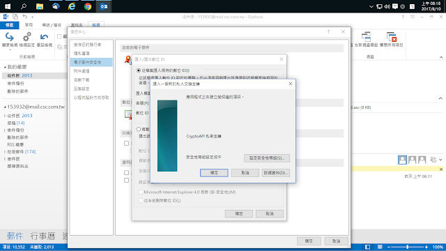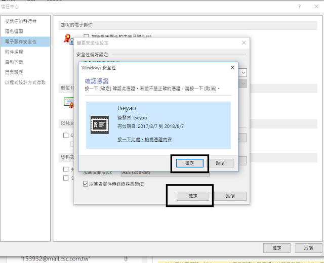 […] [OUTLOOK]設定微軟OUTLOOK數位簽章(數位ID)及加密方式(上) […]